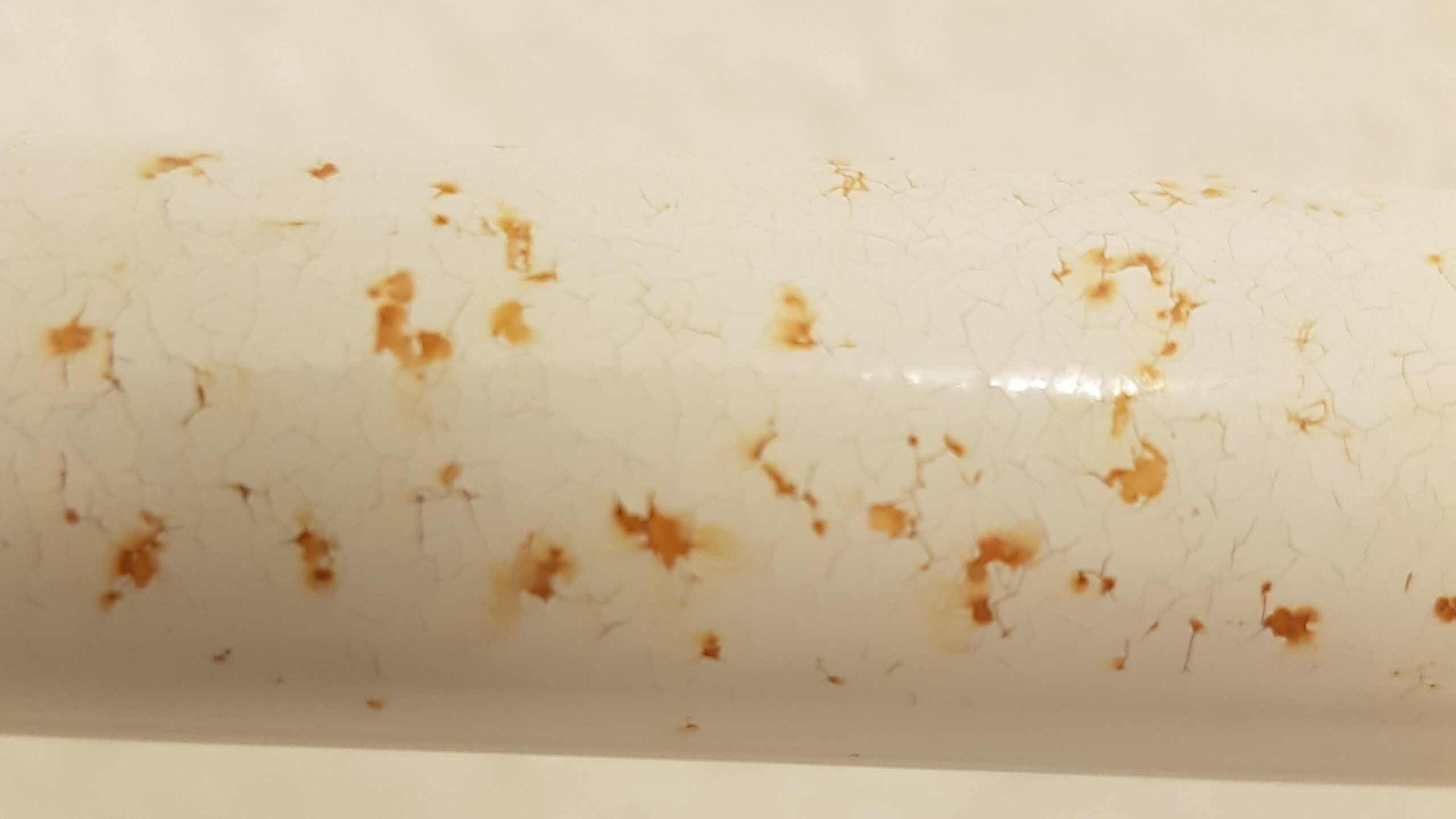 Man sieht eindeutig am Schadensbild, dass durch augenscheinlich über die lange Zeit aufgelegten feuchte / nasse Materialien auf dem warmen Heizkörper – wahrscheinlich in Verbindung mit einer chemischen Reaktion (ggf. durch Weichspüler, Haarspray oder Reinigungsmittel) vermehrte Oberflächenspannungsrisse entstanden sind. Der Lack ist richtig aufgebrochen und durch die permanent vorhandene direkte Feuchtigkeit entstanden Rostflecken. Diese Schäden sehen nicht nur unschön aus, sondern führen auch langfristig zur Undichtheit der Heizkörper und können durch Ihr Handeln vermieden werden.